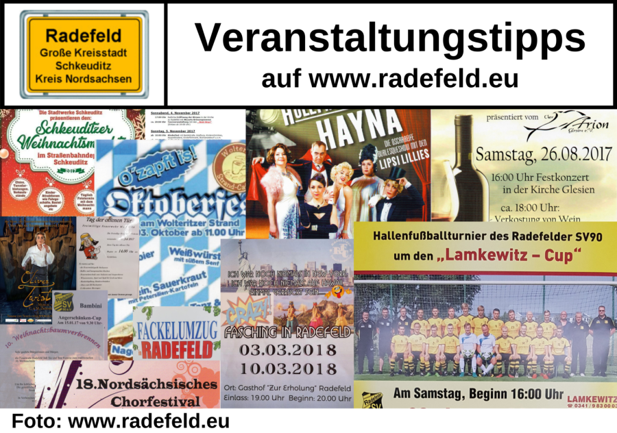 Aktuelles, wie Bekanntmachungen und Informationenen über und zu Radefeld finden Sie auch im Internet auf der Webseite unserer Kernstadt Schkeuditz unter: www.schkeuditz.de