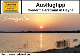 Am Haynaer Ufer vom Schladitzer See befindet sich der Biedermeierstrand, welcher zum baden und sonnen an den Strand einlädt. Auch zu ausgiebigen Spaziergängen und Radtouren ist der Rundweg um den Schladitzer See gut ausgeschildert. An einigen Tagen bietet der ansässige Haynaer Strandverein verschiedene Aufführungen an.