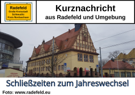 Die Stadt Schkeuditz gibtnachstehende Schließzeiten zum Jahreswechsel 2023 / 2024 bekannt.