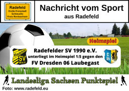 Unsere Jungs von der Radefelder 1. Mannschaft unterlagen am Sonntag nachmitag mit 1:5 gegen die Gäste vom FV Dresden 06 Laubegast. Damit ist auch das letzte Spiel im 2023 Geschichte.