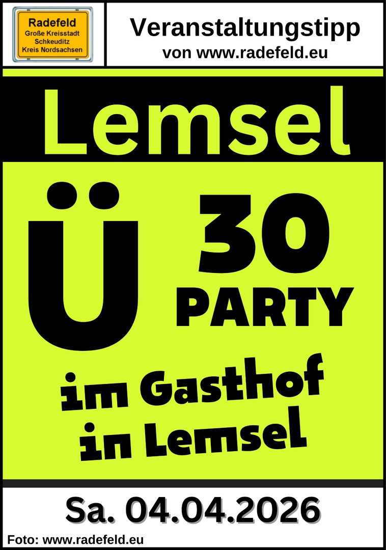 Der Gasthof Lemsel lädt zur Ü30 Party ein.
