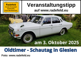 Alle Oldtimerbesitzer und -besitzerinnen und natürlich all jene, die sich für alte Fahrzeuge interessieren, sind recht herzlich zum jährlichen Oldtimer-Schautag in Glesien eingeladen.