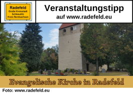 Pfarrer D. Senf lädt zum Gottesdienst in die Evangelische Kirche in Radefeld ein.